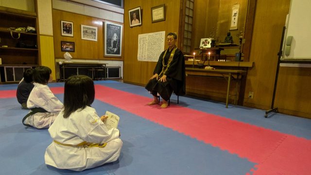 「少林寺拳法をインドから中国に伝えただるまさんは、七転び八起きと言って不屈の人です。みなさんも、これから先、何かでくじけたりすることが何度もあるでしょう。大事なのは、そのたびに起き上がっていくことです。少林寺拳法を続けていれば、みなさんは強くなります。強いだけでなく、優しい人になってください。優しさと強さを兼ね備えるている人、それが良い人です。そうやって、良い人が多くなれば、この国は良い国になります。そして、良い国を増やしていけば、世界はもっと、素晴らしいものになります。がんばりましょう!」
