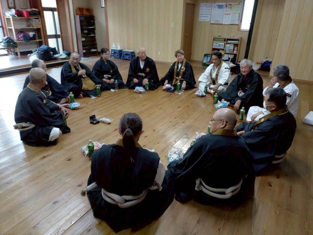 研修会では、僧会学習と易筋行を行いました。僧会学習講師には、愛知県教区教師の平井慎二先生(愛知朝日道院)をお招きし、小教区長の佐竹浩志先生(豊川南道院)と二人体制で2テーマ実施しました。