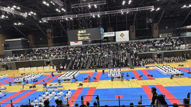 床には色付のマットが敷いてあり、コート設営がされていました。また、点数は各審判の先生方が端末入力して、電光掲示板で表示されていたとのこと。神奈川県連盟の皆様の大会運営のアイデアが随所に見られたとのことです。