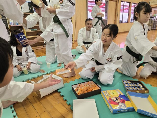 修練が終わりほっと一息。お土産をいただきながら交流の時間です。