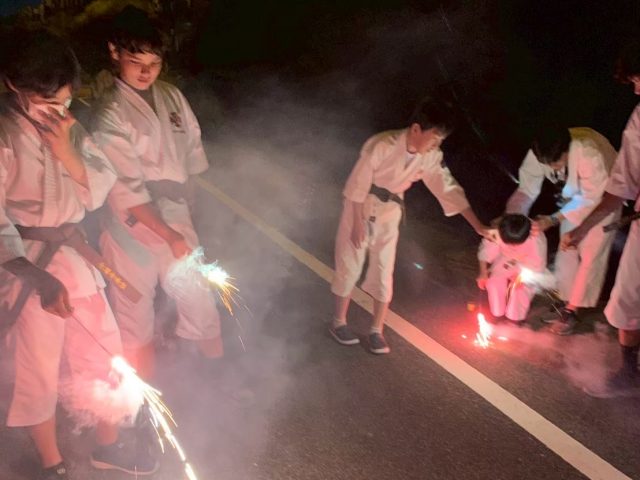 8日(金)の夕方、まず道院に集まって鎮魂行をし、暗くなる頃に肝試しに出発!