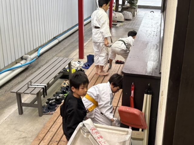 今年の最後の修練日、刈谷中部道院と一緒に大掃除から始まる。修練会場として1年間お世話になった道場。気持ちを込めてみんなで大掃除を行う。有り難うございました。