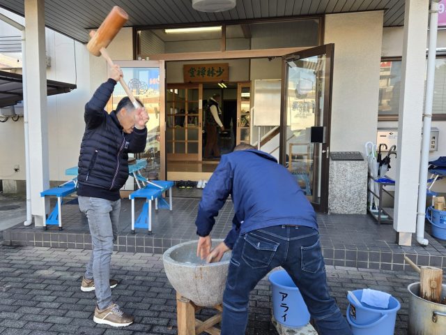 12月29日(月)米こめ倶楽部の主催する餅つきを少林寺拳法会館で開催した。NPO法人の仲間やボランティア仲間、ご近所のみなさんが早朝から集まり48臼つきあげた。餅米を持参し杵でつき、自宅へお餅をもって帰るという誰でも気軽に参加できる会です。日頃お世話になっている方や親しい関係の方々にも声を掛け今回が35回目。食べ物も沢山あり昼食時は大賑わいであった。餅つきを楽しみながら交流を深めつながっていく団体や個人。このつながりを大切にする会です。