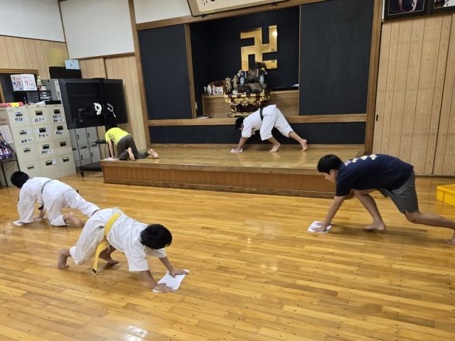 作務を行う、鎮魂行を行う、結手も出来ちゃう。未就学児の体験者が道場にやってきた。おじいちゃんが拳士と言うこともあり教えてもらっているらしい。出来ないところは先輩拳士がしっかりと教えてくれる。とっても元気のある子どもで私たちが元気をいただいている。