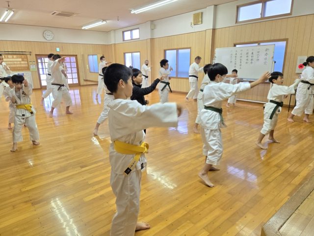 「エイッ」「ヤアー」道場内に元気な気合いが響きわたる。12月20日(土)14時から刈谷中部道院と合同で修練納めを行う。今年最後の稽古でもあり大勢の拳士が集まった。この1年を振り返りながら思いっきり突きや蹴りを行い充実した修練であった。