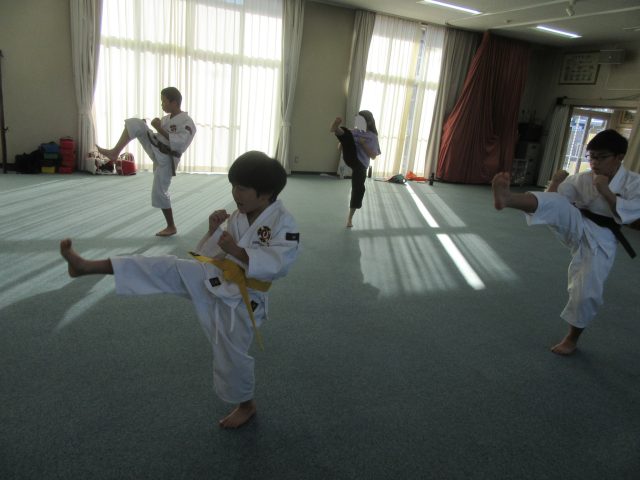 その中心になって貰う小6三級のA君も早めに参座してくれましたので、家に忘れてしまった手続きの書類を、「時間が来たらH君と準備運動してて」と伝えて取りに帰ったのですが、正直ダラダラ時間を潰してるんだろうなと想像していました。が、市民館に戻り玄関に向かうと、外にも聞こえて来る号令と気合いの声が。人数は変わらず2人のまま、しっかりとした「基本演練」をしていました。戻る前にA君に「手続きの説明の時は、あなた中心に修練を進めて貰うよ」と伝えていたからでしょうか、「それにしても随分意欲的だなぁ」と驚きます。