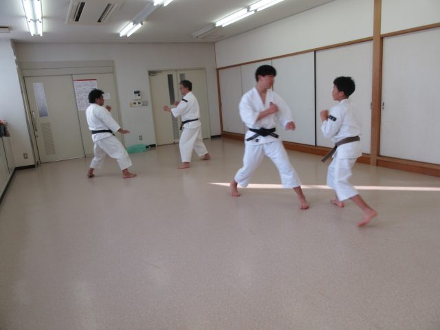 A君には、手をぶつける要素の少ない団体演練には出て貰う事にし、その内容を加味した基本演練を進め、その後副道院長のNさんとSさん・H君と私の演武構成の確認・習熟に入ります。いつも土日はクタクタで身体も満足に動かない私も、長い休憩を挟みながらH君との演武を高めていきますが、そこそこ良い感じで進み、NさんとSさんの演武の相手をしたりも出来ました。