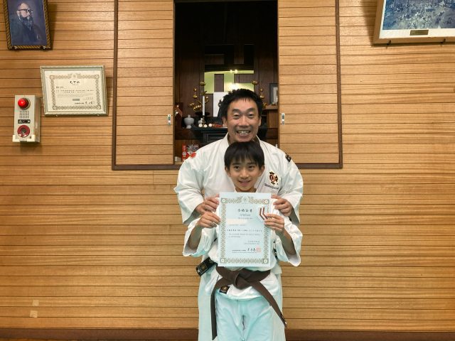 一般拳士が三段に合格したので道院にて合格証書、允可状を授与しました。